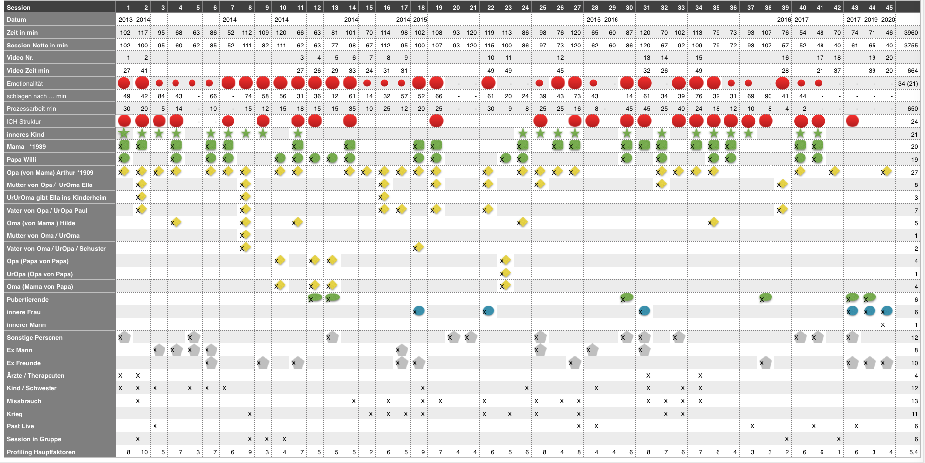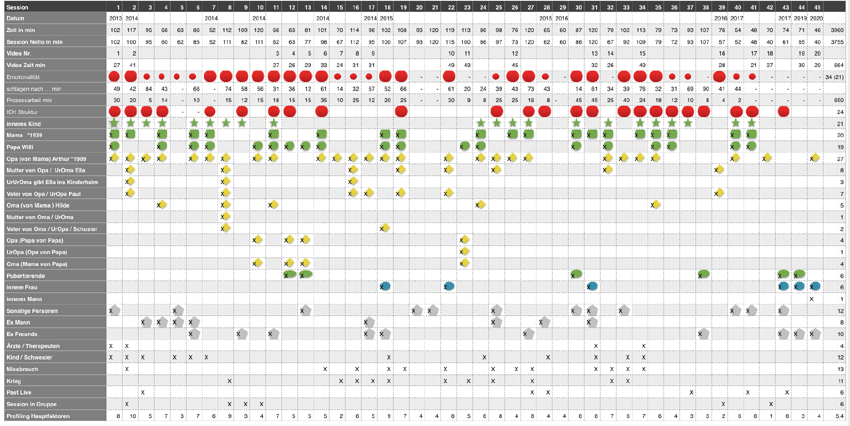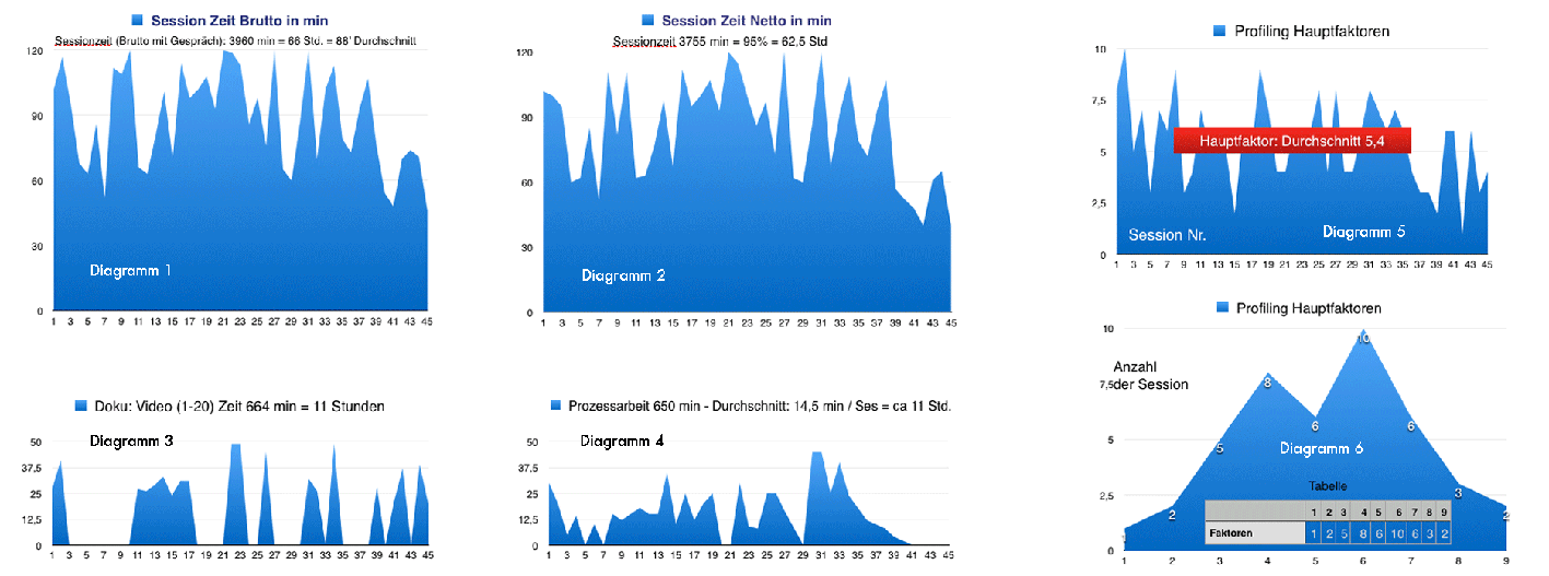 Die einzelnen Sitzungen zeigen in Gänze einen Therapieverlauf, in