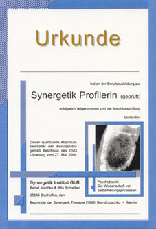 Der Begründer der Synergetik-Methode, Bernd Joschko, fragte sich 1982, ob dieses evolutionäre Naturgesetz nicht auch in der Psyche des Menschen wirksam sei. Hatte doch C.G. Jung bereits vor Jahrzehnten von der Selbstregulation zwischen Bewusstem und Unbewusstem – wie sie z.B. im Traum auftritt - gesprochen.